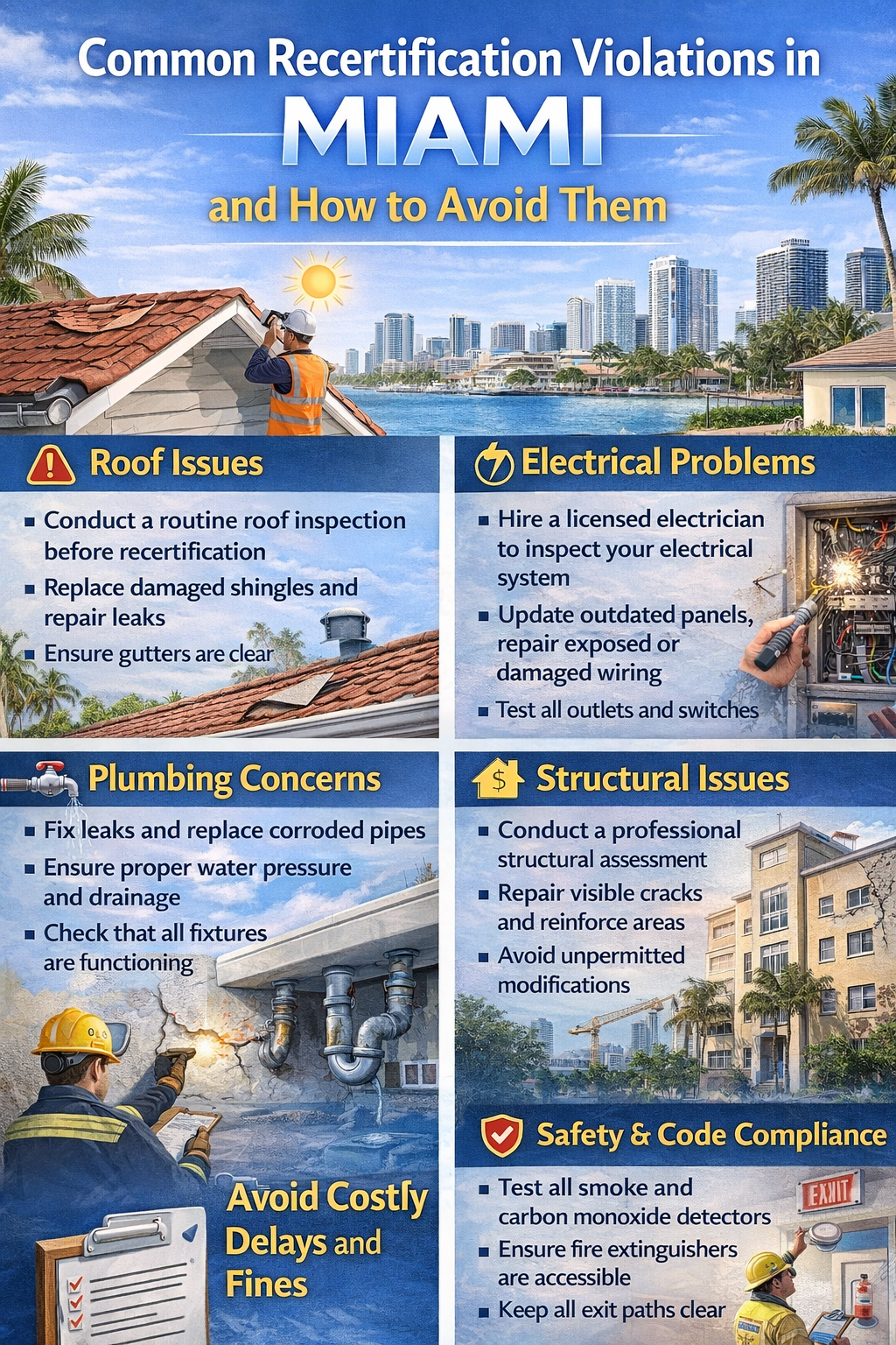 Property recertification in Miami is a critical process that ensures buildings meet safety and code standards. Unfortunately, many property owners face delays or fines due to common violations that could have been prevented. Understanding what inspectors look for can save you time, money, and stress.